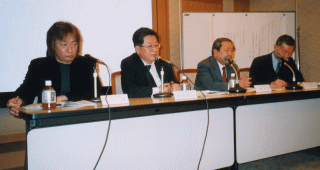パネラー:八幡理事長、田中技術委員長、飯田幹夫(ソニー株式会社)、志村明(有限会社スターテック)