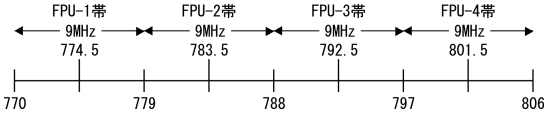 周波数帯は、770MHz〜806MHzで、この中に4ch分のFPUがあります。