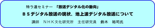 7月2日特定ラジオマイク利用者連盟通常総会のおりに行われましたセミナーの概略です。当日受講者は70名を超え、目前にせまったテーマだけに皆さん熱心に耳を傾けておられました。紙数の都合上セミナーの一部であることをお許しください。