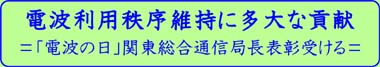 表彰状には、「あなたがたは高品質なA型ラジオマイクの使用の際に放送用地上無線中継装置との電波の干渉による障害混信を回避するため運用調整を行ない免許申請に係る支援・関係法令周知など電波利用秩序維持に多大な貢献をされました その功績は誠に大きいので電波の日に当たり表彰します」と功績が具体的に記されています。